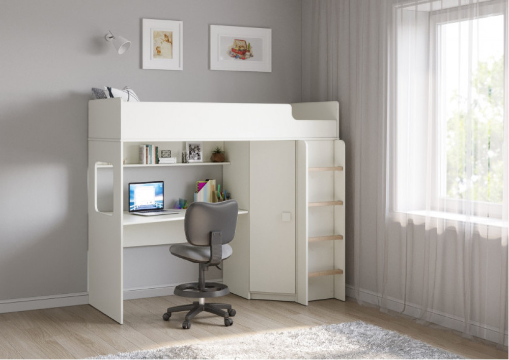Учебная зона со столом под спальным местом открывает возможности для письменных работ,а также здесь удобно расположить ноутбук.