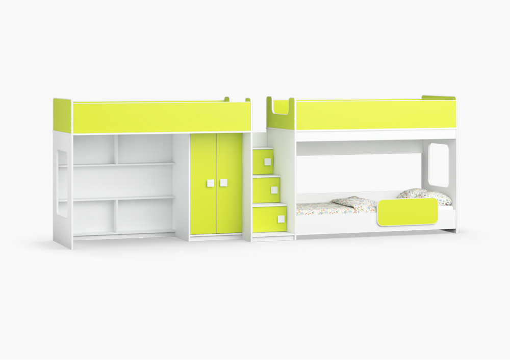 Две кровати, шкаф, игровая зона – одна лестница. Идеальный вариант для троих!