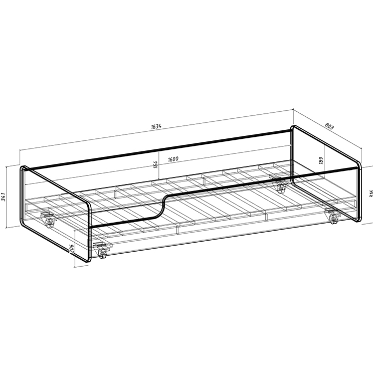 Длина/Ширина/Высота (мм) 1634 × 803 × 341